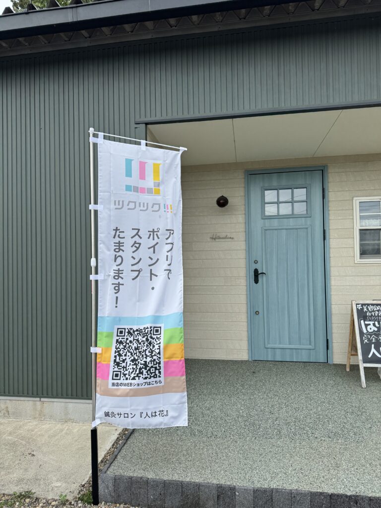 ブルーのドアと、こののぼりを目印にお越しくださいませ😊