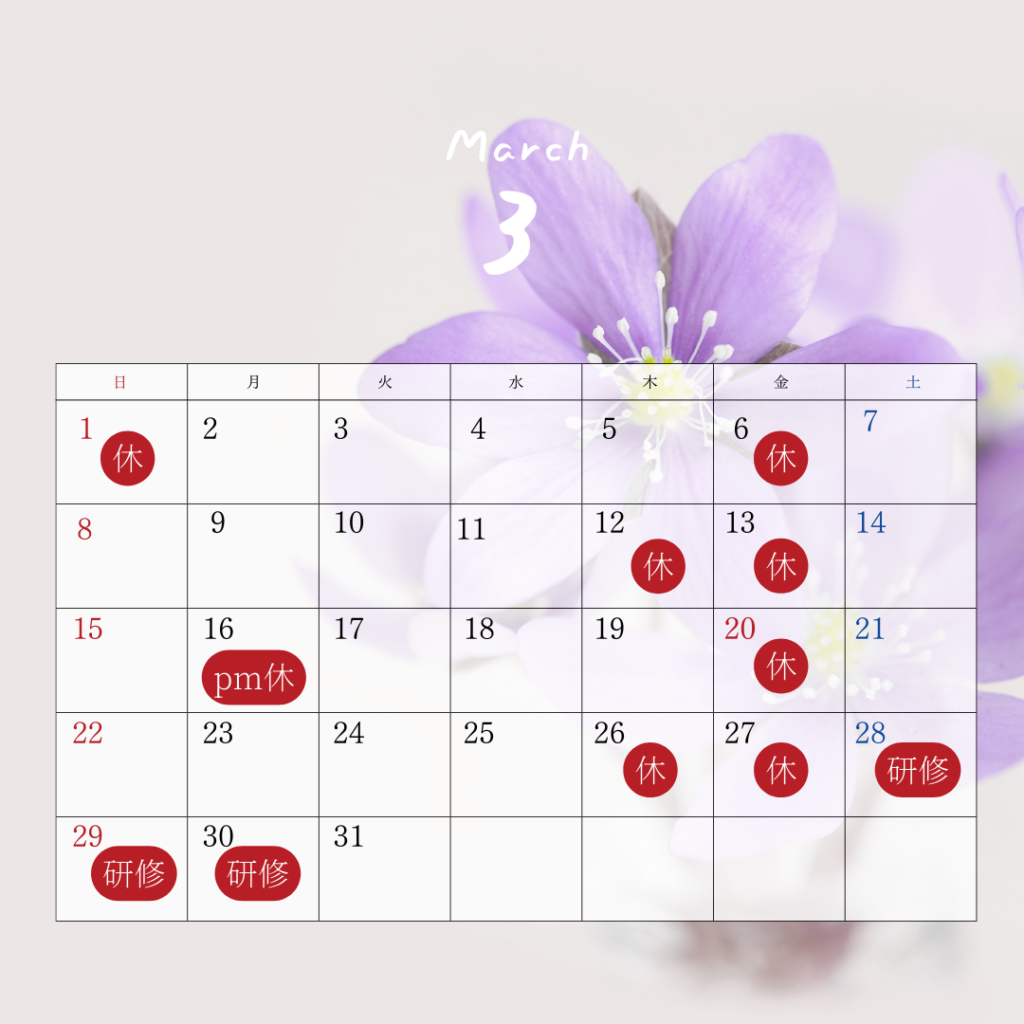 3月の営業カレンダー