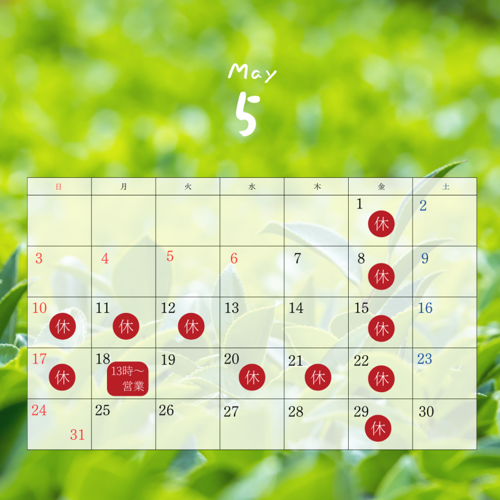 5月の営業カレンダー